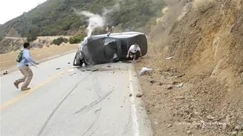 吓尿了!宝马峡谷漂移撞山崖后翻车