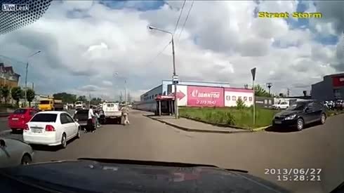 还是枪好使 俩车斗气 掏枪立马软蛋