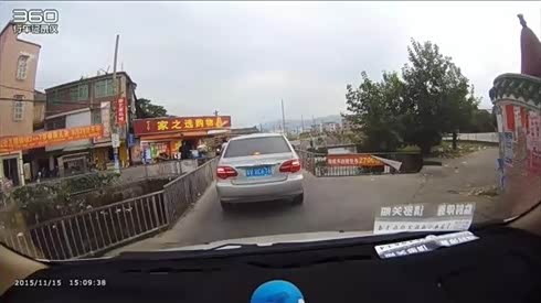 恐怖慎入 白色轿车失控 瞬间被撞成俩半