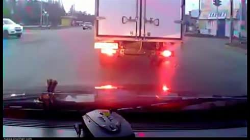 疯狂渣土车闯红灯 拖拉机不幸中招...