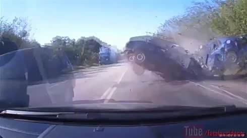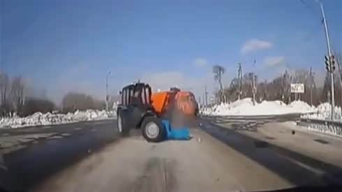 疯狂渣土车闯红灯 拖拉机不幸中招...