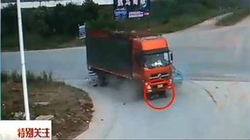电车男卷入大货车车底 拖行数十米 死里逃生...