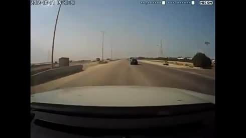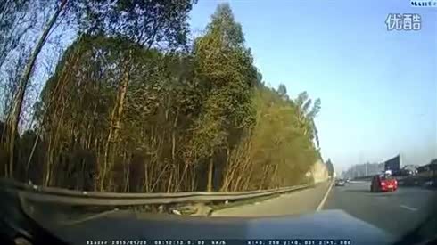 小车撞毁瞬间 行车记录仪显示当时速度为100公里