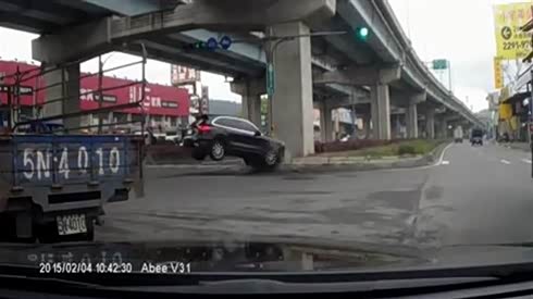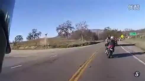 不作不死!飞车骑士躲闪不及 一飞冲天