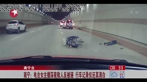 又现碰瓷 南宁电台女主播深夜救人反被诬 行车记录仪还其清白