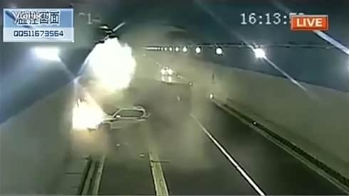 活该!隧道内强行超车 丰田普拉多惨撞大货车