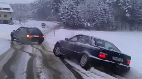 奥迪雪地救援宝马 看着也是急死宝宝了