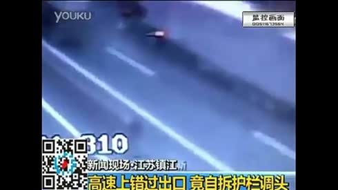 大货司机错过高速出口 竟自拆护栏强行掉头