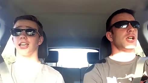 燃到爆 国外酷炫父子对口型车内假唱