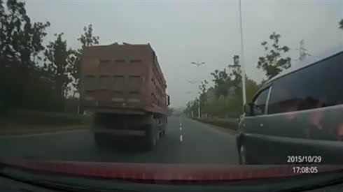 疯狂渣土车 恶意别车 瞬间吓尿了...