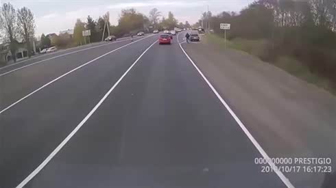 好心大货车发现前方有行人故意变道迫使后方车辆减速