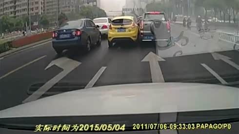 倒霉蛋女司机 闯灯连撞7辆摩托车