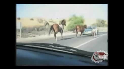 太吓人 烈马飞跃汽车 一脚踩漏车顶