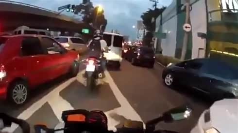 危险耍酷 爆强摩托车流中肆意狂飙