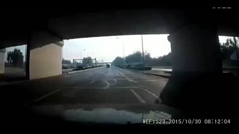 惊魂一幕 卡车按着喇叭猛撞电线杆