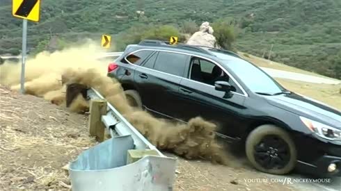 本来想耍酷-结果差一点撞护栏Subaru SUV