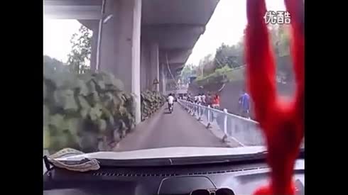 电瓶车一直占着机动车道,司机怒撞之逃跑