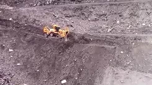 感觉随时都会掉下去 推土机悬崖边修路
