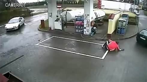 实拍 奇葩女司机加油后 不拔枪 害惨员工