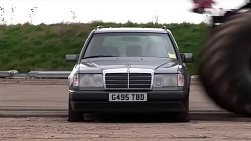 好过瘾!大脚怪兽暴力摧毁奔驰车