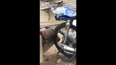 拉老虎的皮卡车被追尾后 要放老虎出来咬司机