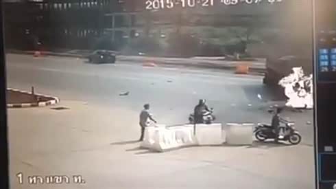 这个太惨 摩托男急速撞向卡车 太恐怖