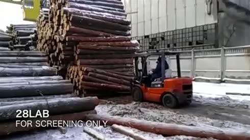 监控实拍:叉车运输木头 差一点被秒杀...