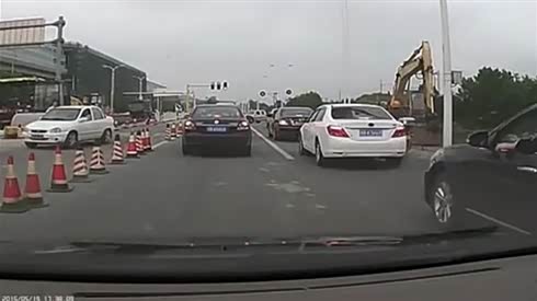监控实拍:挖掘机撞倒路灯柱 多车被砸 太惊险了...
