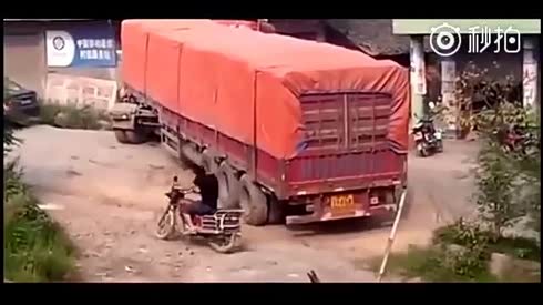 震撼!男子开奔驰重卡强行渡木桥悲剧