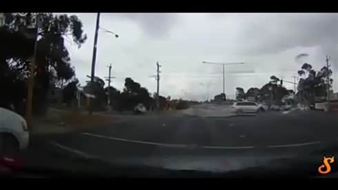实拍奥迪RS6 C7 闯红灯惨被电车撞冒烟