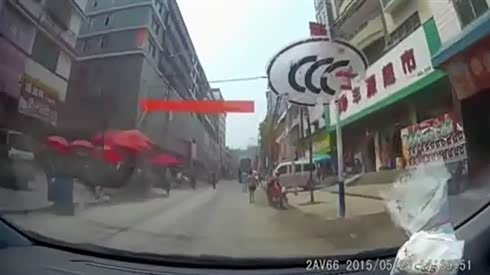这种情况你也会吓尿 轿车瞬间被撞碎