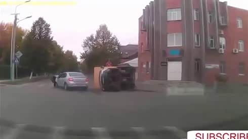 宝马狂飙闯灯 吉普车被撞飞 旋转720度...