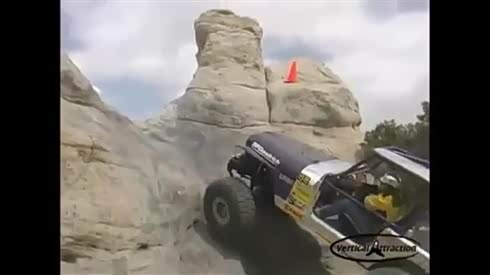 美女开Jeep暴力攀爬垂直岩壁 惨烈翻车