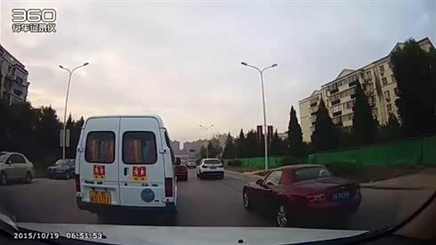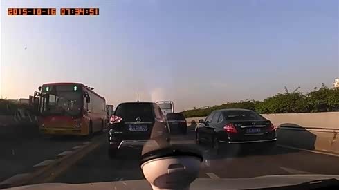 实拍 摩托车玩命闯红灯 不惜钻到货车轮下