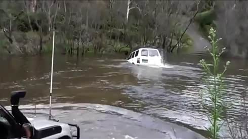 实拍 卡车拉满木头 晃晃悠悠过了大河