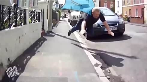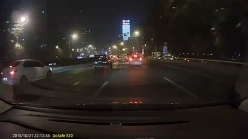 好痛啊! 机车男剐蹭钢铁护栏 摩托车都飞了