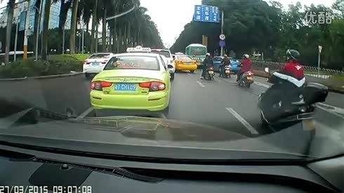 摩托车抢道惨烈车祸 胆小慎入