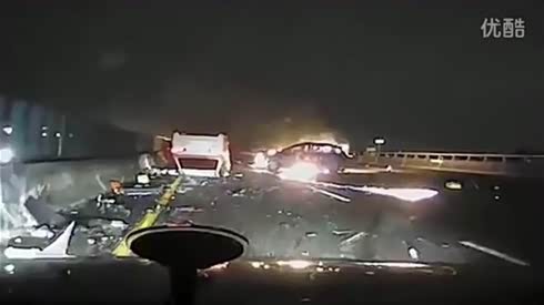 实拍 出租高速追尾 没有车灯的货车 车头都没了