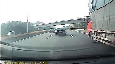 实拍 彪悍司机野蛮并线 顶起小车 酿惨祸