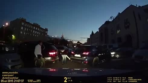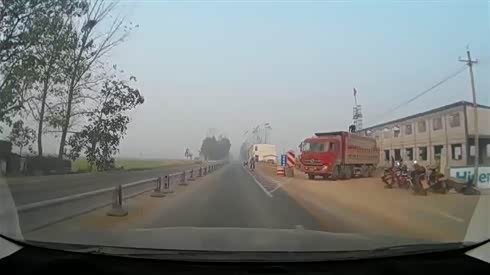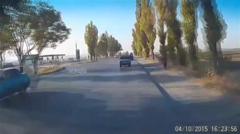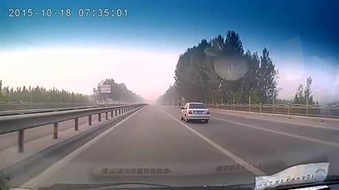 实拍 拉达轿车为躲大坑 不惜失控翻车