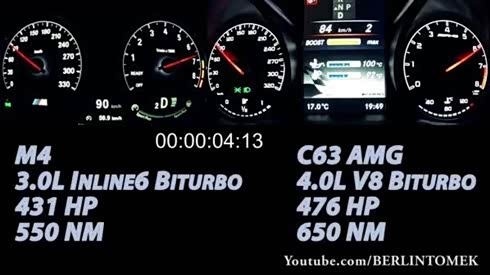 加速隔空对比 宝马M4 vs 奔驰C63 AMG W205 0-250km/h