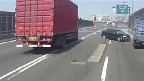 监控实拍:货车侧翻 瞬间铲平轿车驾驶舱恐怖一幕