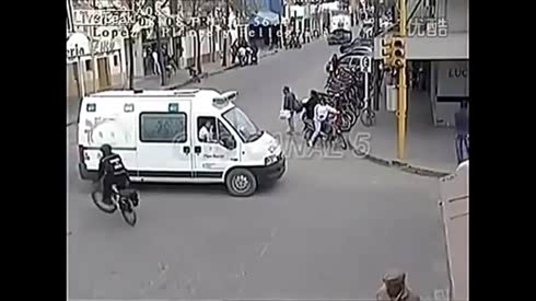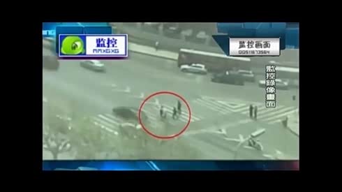 监控实拍:两车追尾 执勤女交警被撞飞
