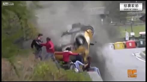 车手飙车失控 翻转撞向路边人群