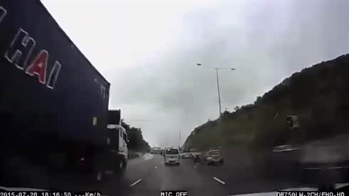 监控实拍:两人骑摩托车返乡 手脚冻麻木 反应迟钝撞卡车身亡