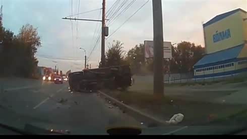 警车追击超载大货车 致惨烈车祸...