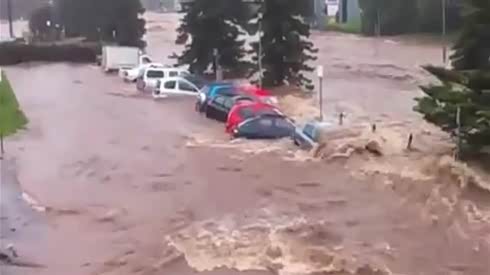 可怕的洪水 眼睁睁看着多辆车被冲走...