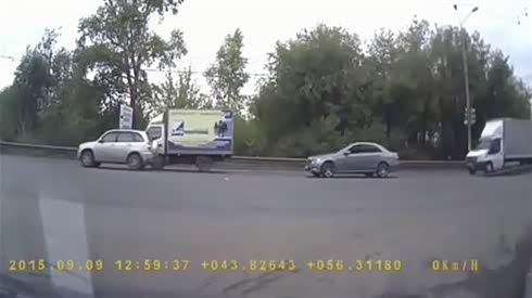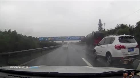 大货车突然变线 奔驰倒大霉...