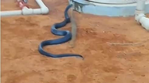 行车途中 突遇森王蛇吞食响尾蛇 上演“蛇吞蛇”