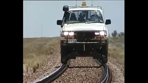 太放肆了 丰田陆巡在火车轨道上飞驰